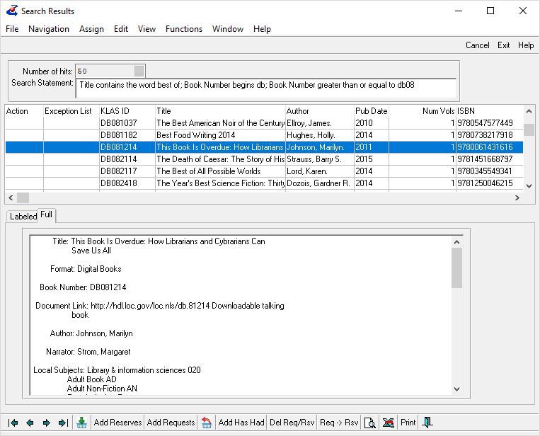 In addition to the default tab containing a books author, narrator, annotation, and local subjects, you also have the "Full" tab. This view often goes unnoticed, but it contains the full catalog record for each title.